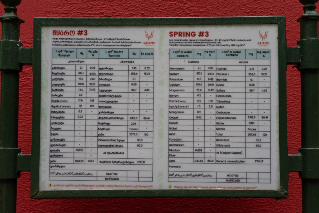 A zona termal de Sairme dispõe de águas ricas em bicarbonato de cálcio, que oferecem uma série de benefícios terapêuticos. É possível comprar água engarrafada, ou ir a um dos centros e experimentar um copo desta água mineral.
