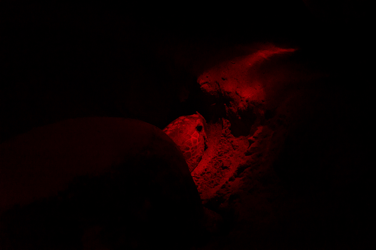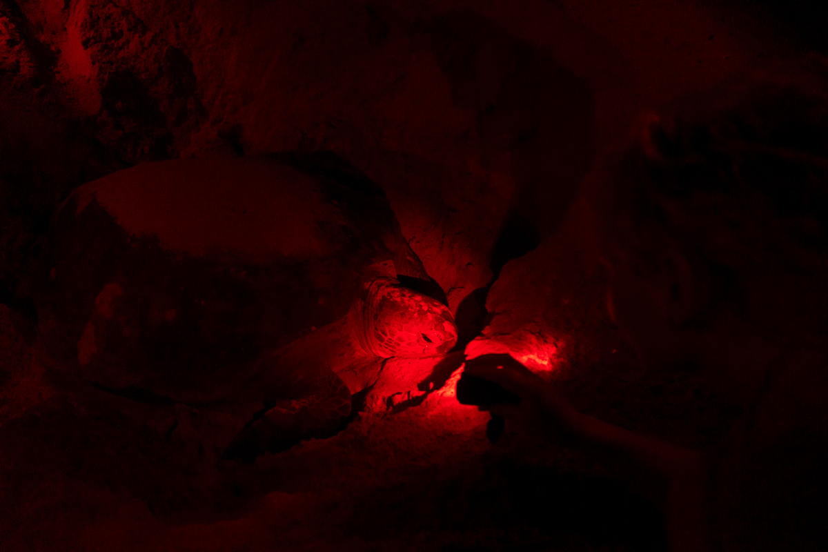 No silêncio, no escuro, completamente despertos pela antecipação da experiência, apenas com lanternas vermelhas para não perturbar as tartarugas, fomos para a praia em busca de avistar a primeira a fazer ninho.