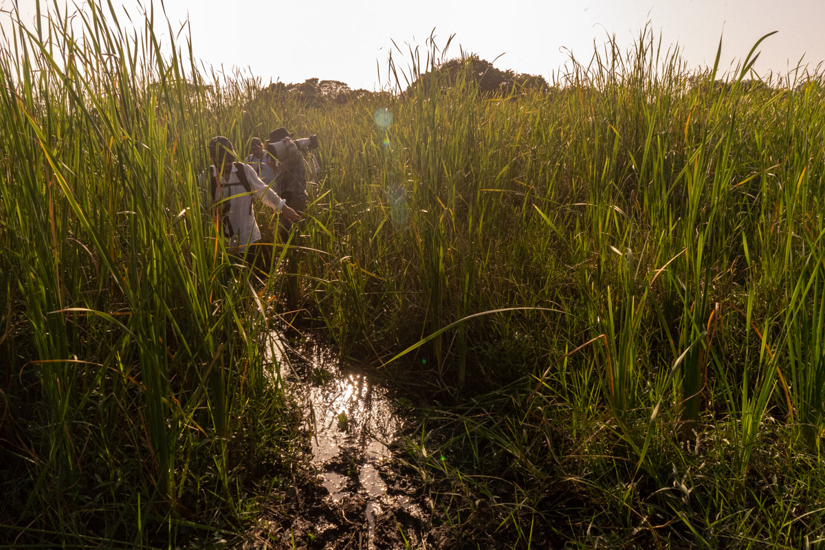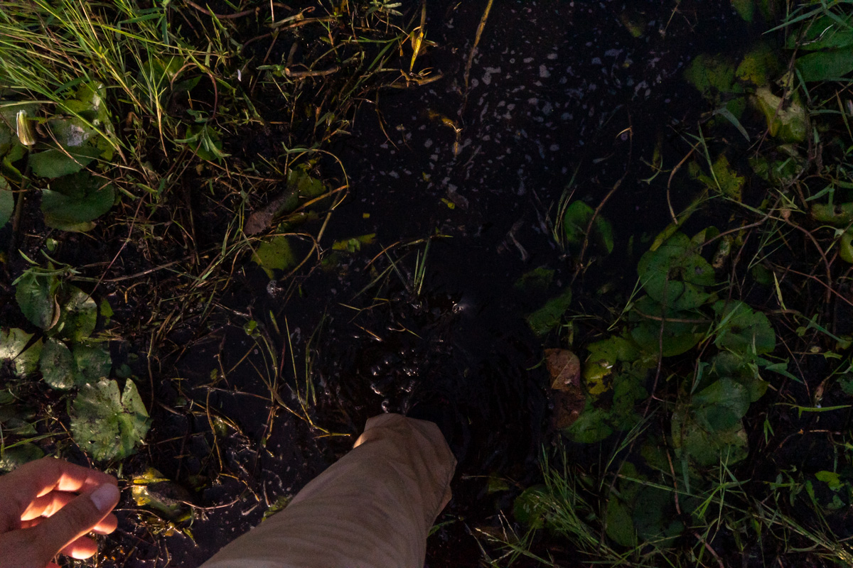 E se me passou pela cabeça que, pelo menos, a água onde ia colocar os pés era fria, estava enganado. Andámos por diferentes pantanais, um dos quais com água ligeiramente acima do joelho, uma água morna e escura, coberta por vegetação.