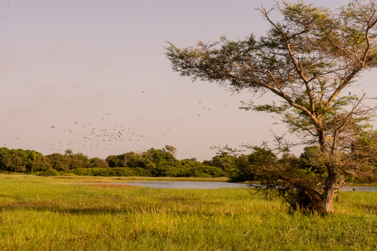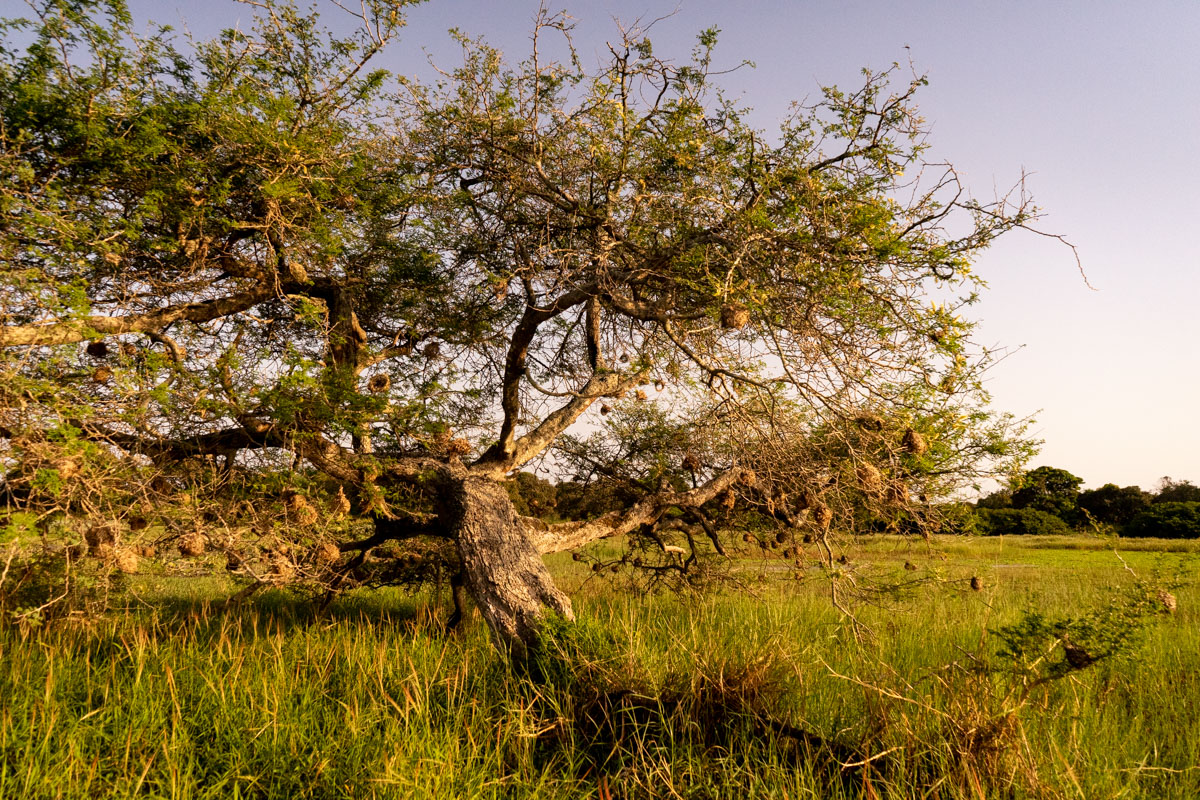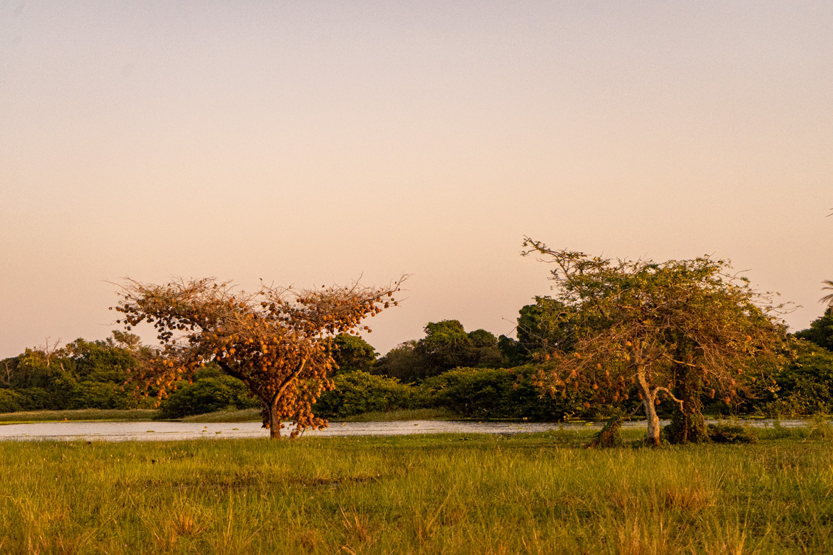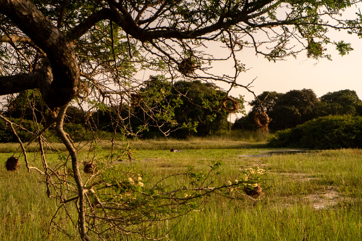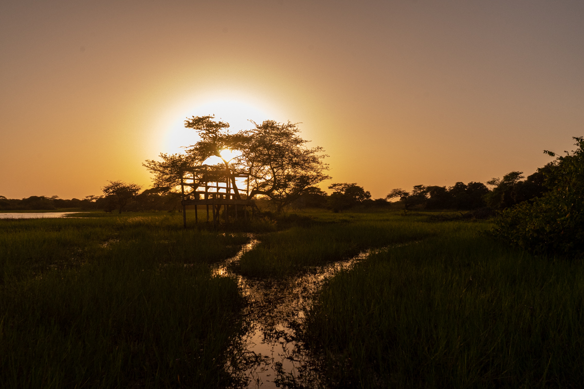Quando chegámos à praia onde se encontrava o barco, o dia estava a terminar e tivemos o nosso pôr do Sol africano, na savana. O cenário era magnífico, mas vê-lo levantou um problema mencionado acima: não se navega à noite com estas embarcações, por causa dos bancos de areia.