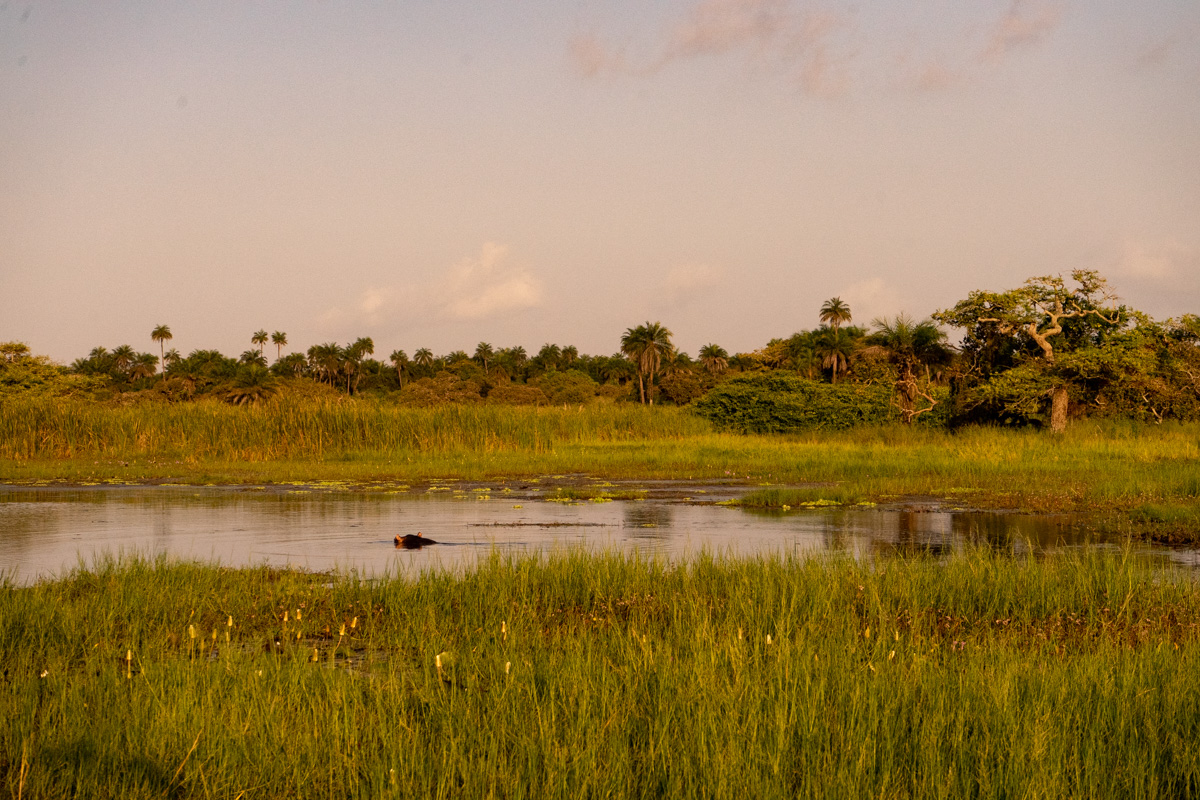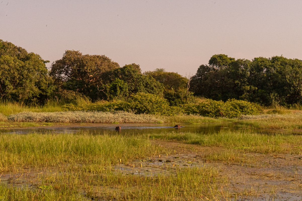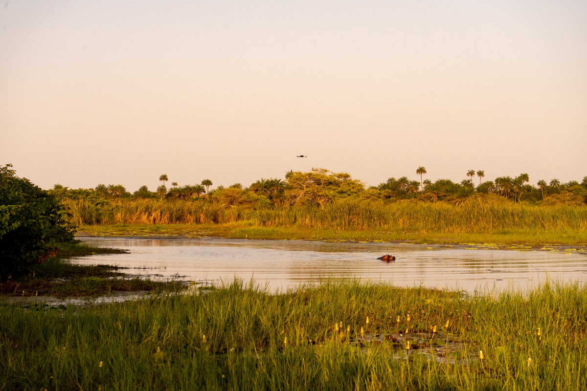 Em 2017, fiz uma caminhada épica num cenário de savana até encontrar os hipopótamos, mas desta vez o caminho foi outro. E em vez da plataforma de observação em madeira, fizemos a observação ao nível do solo.
