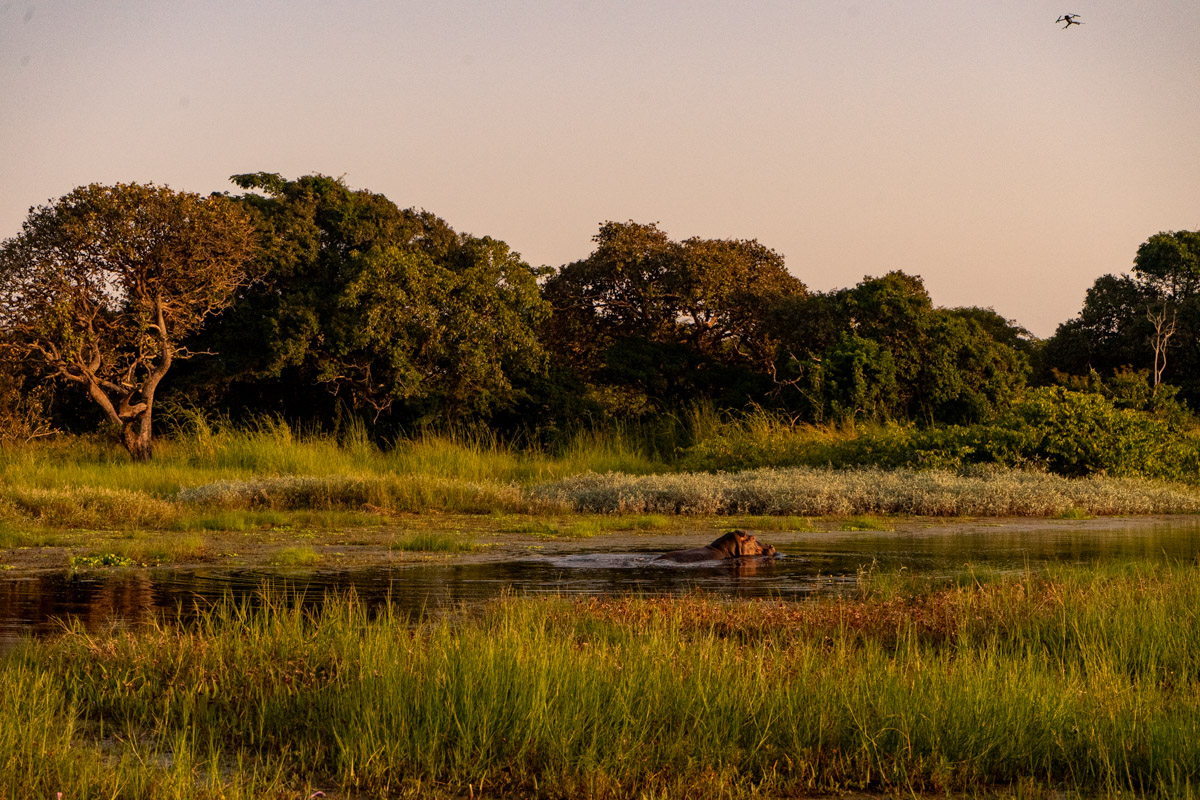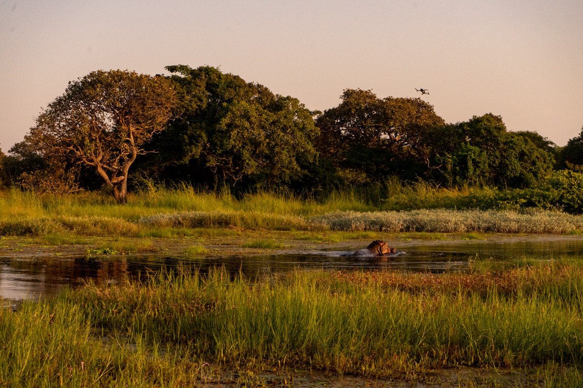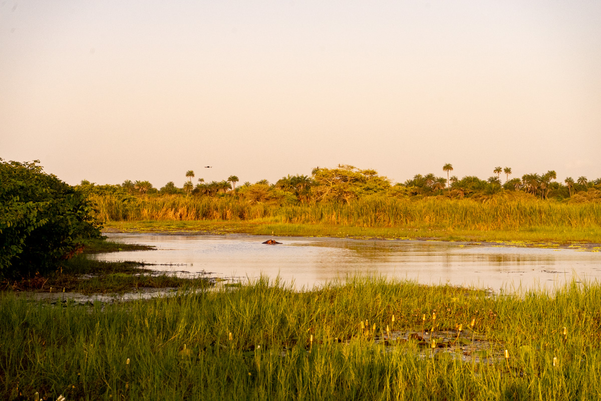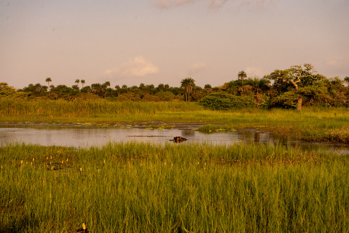 Em 2017, fiz uma caminhada épica num cenário de savana até encontrar os hipopótamos, mas desta vez o caminho foi outro. E em vez da plataforma de observação em madeira, fizemos a observação ao nível do solo.
