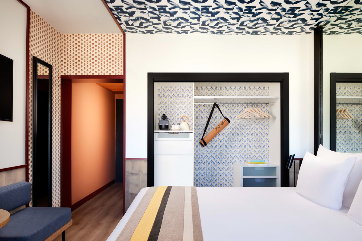 Edi Pires, por sua vez, particularizou que “a grande alteração foi retirarmos a alcatifa, colocamos um chão de vinil, porque nós somos um hotel pet friendly”, além de terem substituído a banheira pelo walk-in shower, em grande parte por causa do feedback dos grupos de séniores. Os roupeiros abertos, sem porta, é outra das tendências que a Avani seguiu neste projecto.