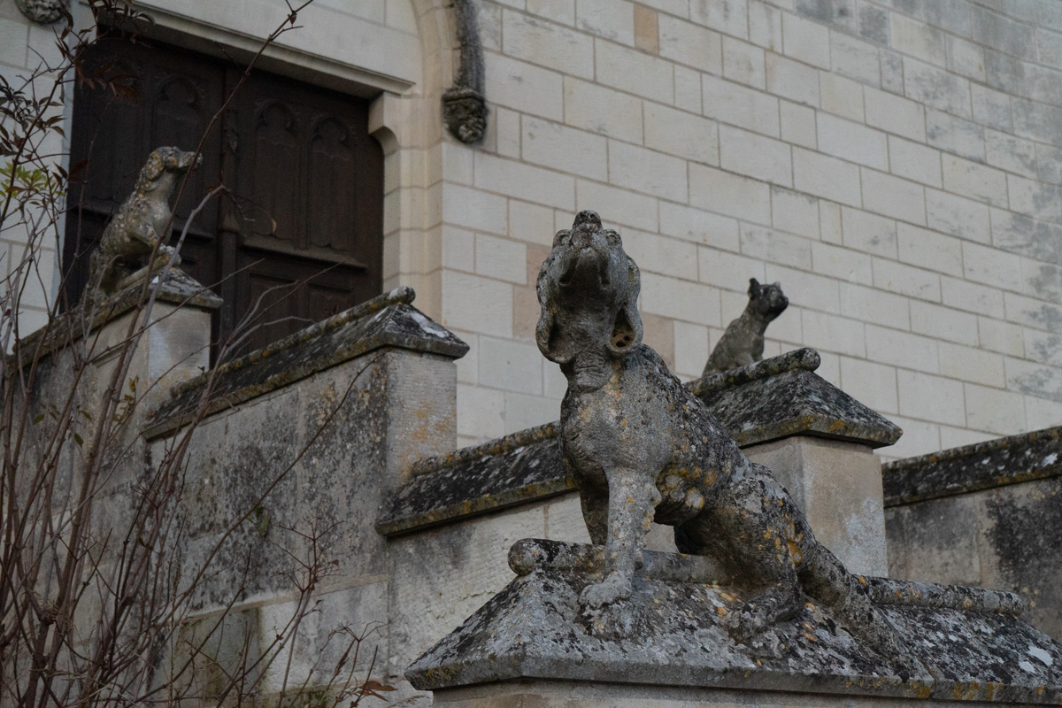 Na entrada da Casa Real somos recebidos com uma série de estátuas de cães, de diferentes raças de caça, numa espécie de homenagem à prática por parte da nobreza desta região.