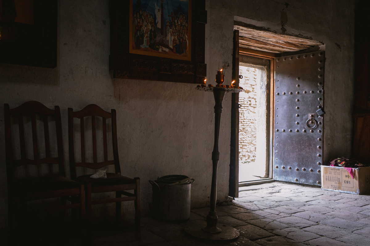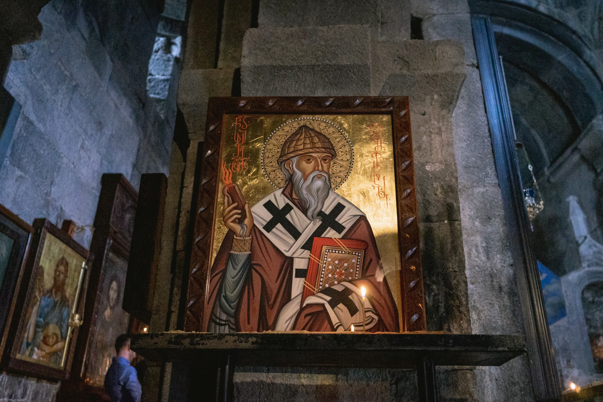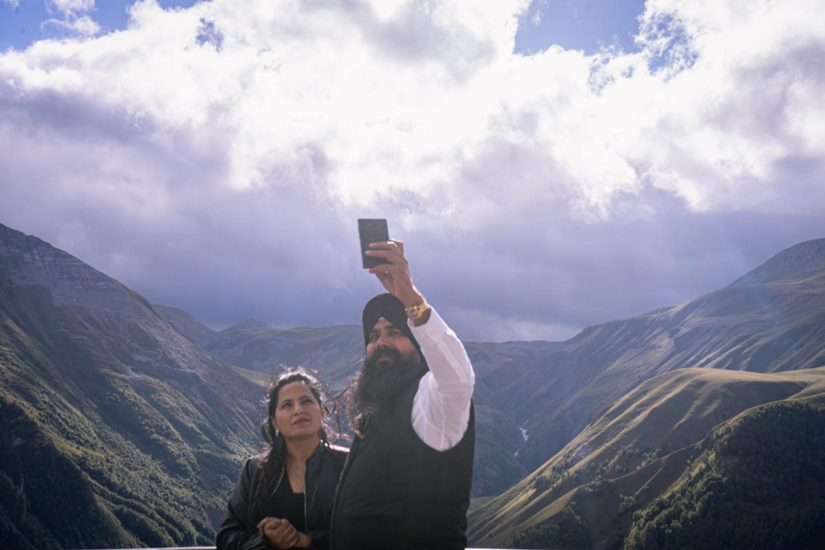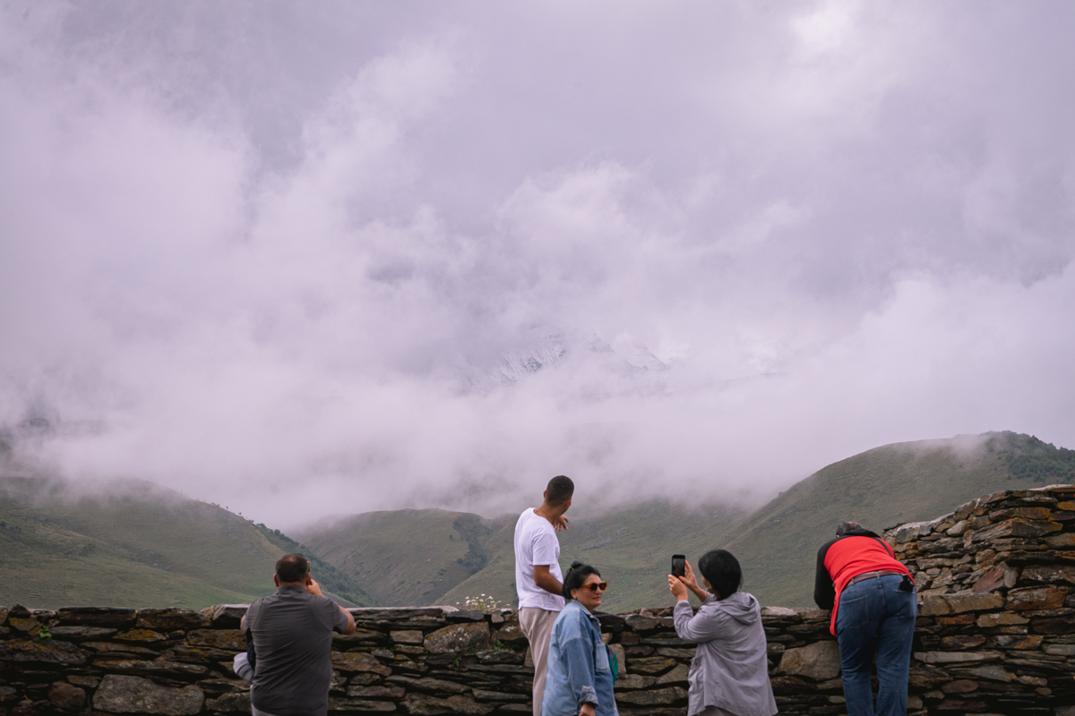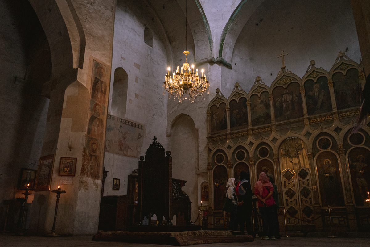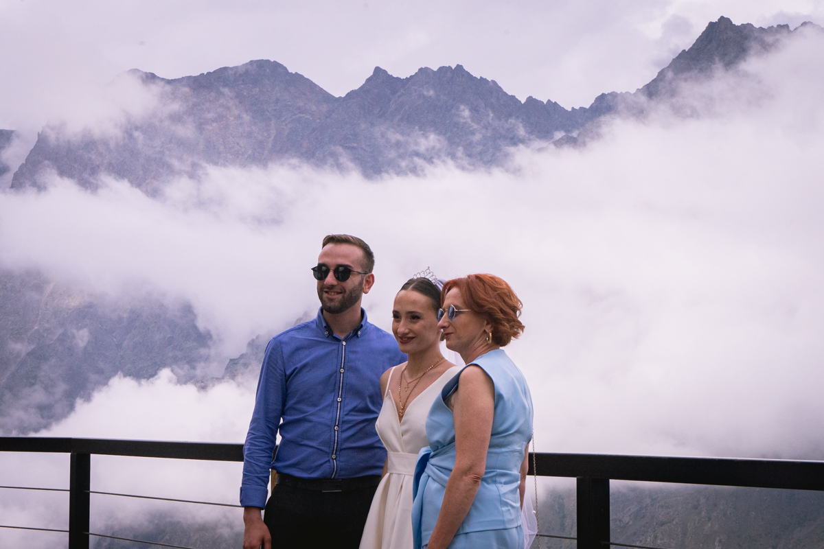 O nome oficial da ‘Noiva’ é Monte Kazbegi e deve a sua alcunha ao facto de passar grande parte do tempo ‘escondido’ por trás de um véu de nevoeiro. Neste templo, à semelhança do que aconteceu no Mosteiro Jvari, o grupo encontrou-se com um casal que estava a celebrar matrimónio.