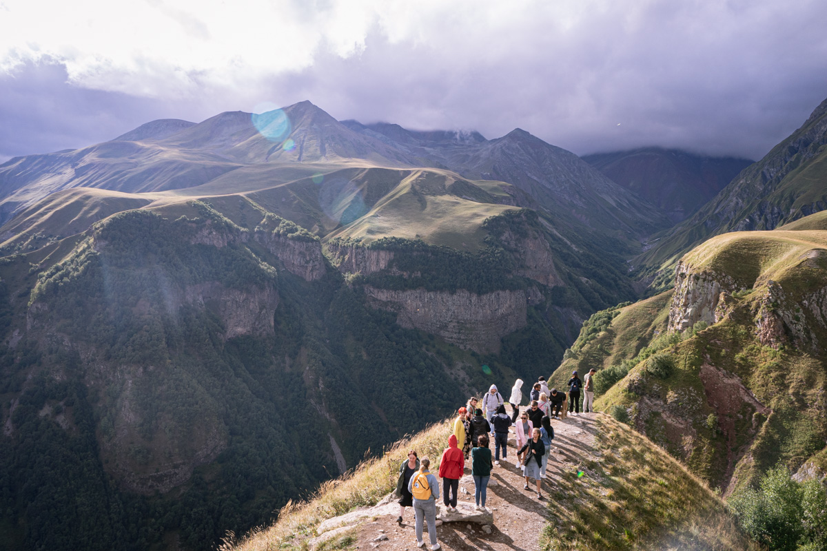 Depois do almoço, e no caminho de regresso a Tbilisi é possível apreciar a paisagem para o Monumento da Amizade de Gudauri, erguido entre as montanhas do Cáucaso durante a época soviética, na estrada que conecta a Geórgia à Rússia. Actualmente, é uma zona popular para a prática de parapente e para a prática ainda mais popular de selfies.