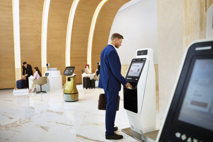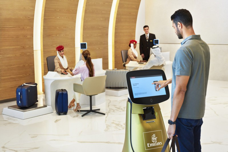 Um dos destaques da nova loja é a assistente robô Sara, que a Emirates apresenta como “um inovador sistema de check-in robótico portátil”. A Sara confirma a concordância entre um passaporte digitalizado e o rosto do cliente, faz o check-in e leva o cliente até área designada para despachar a bagagem.