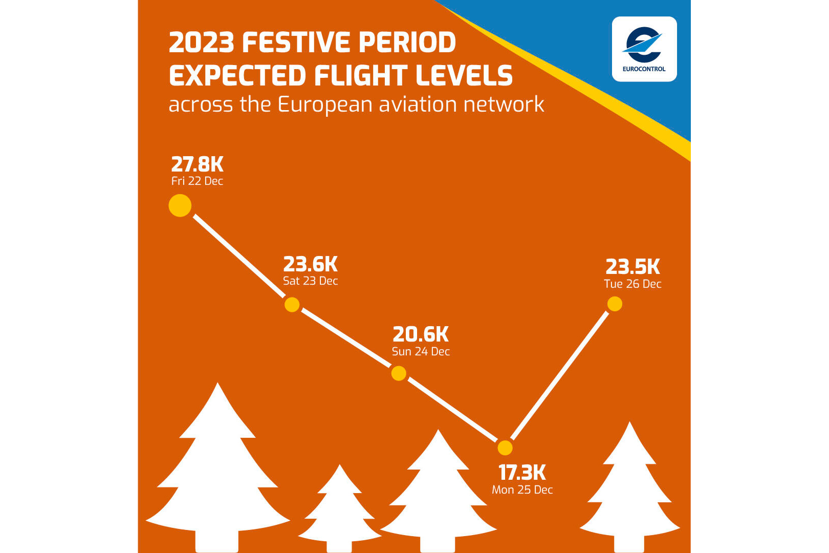 Para Sábado, dia 23 de Dezembro, o Eurocontrol prevê 23,6 mil voos na Europa, e para Domingo, 20,6 mil.