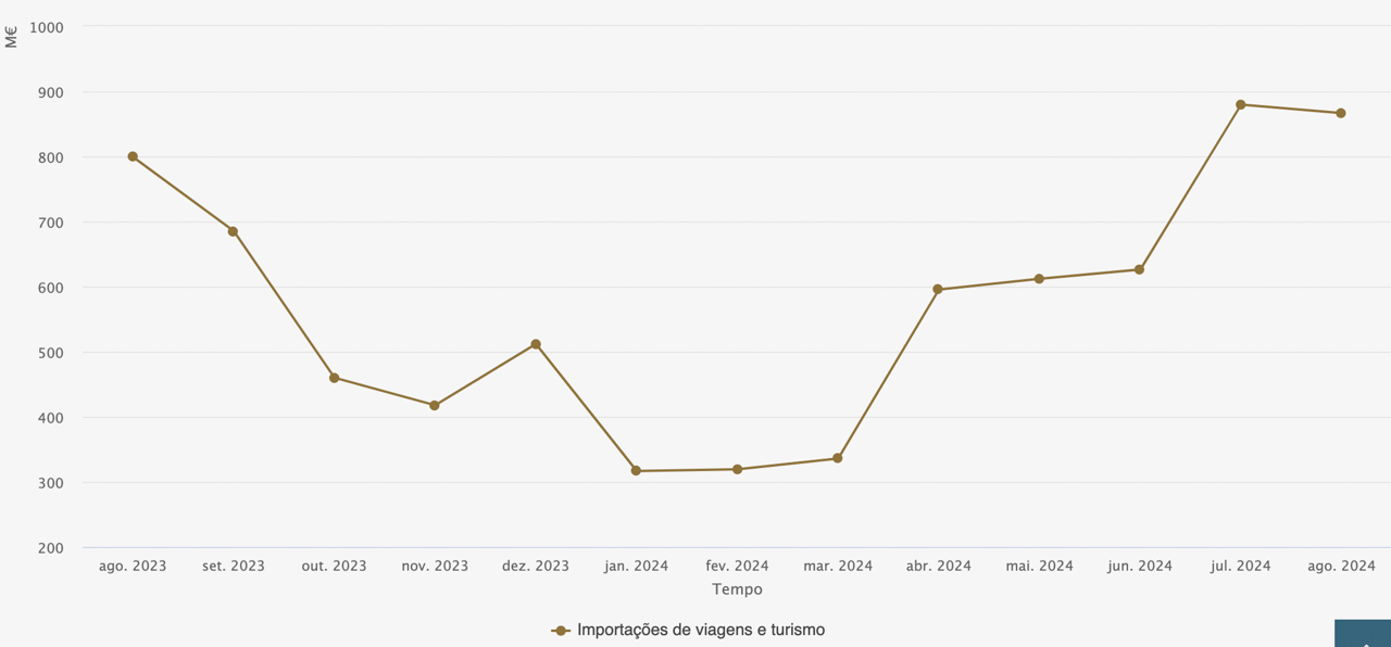 A informação divulgada hoje pelo Banco de Portugal mostra que em Agosto, tradicionalmente o mês mais forte de turismo em Portugal, os gastos em turismo no estrangeiro por residentes em Portugal atingiram o montante de 866,49 milhões de euros.