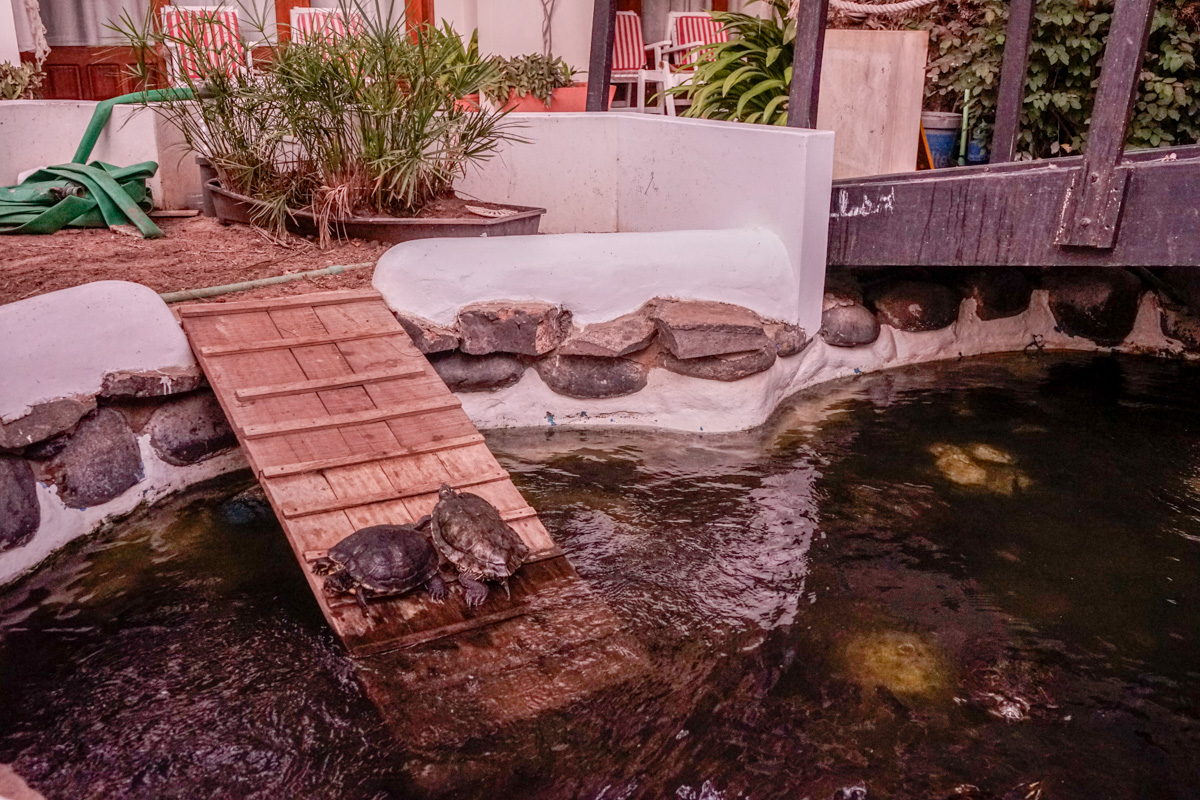 Além dos hóspedes e dos trabalhadores, o hotel é frequentado por um conjunto de gatos que, apesar de não se deixar apanhar, cumprimenta os hóspedes com tímidos miares. Há também um pequeno lago com tartarugas e é frequente encontrá-las na plataforma de madeira a apanhar banhos de Sol.