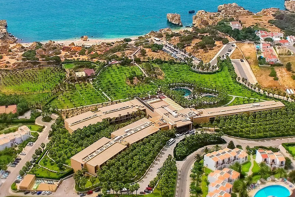 A unidade hoteleira fica a poucos passos da praia de São Rafael, “emoldurada por falésias calcárias, e a uma curta distância de Albufeira”.