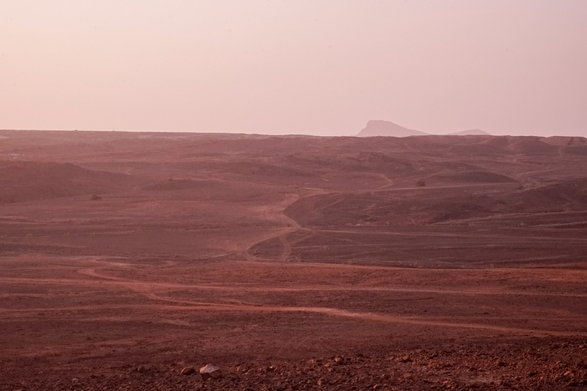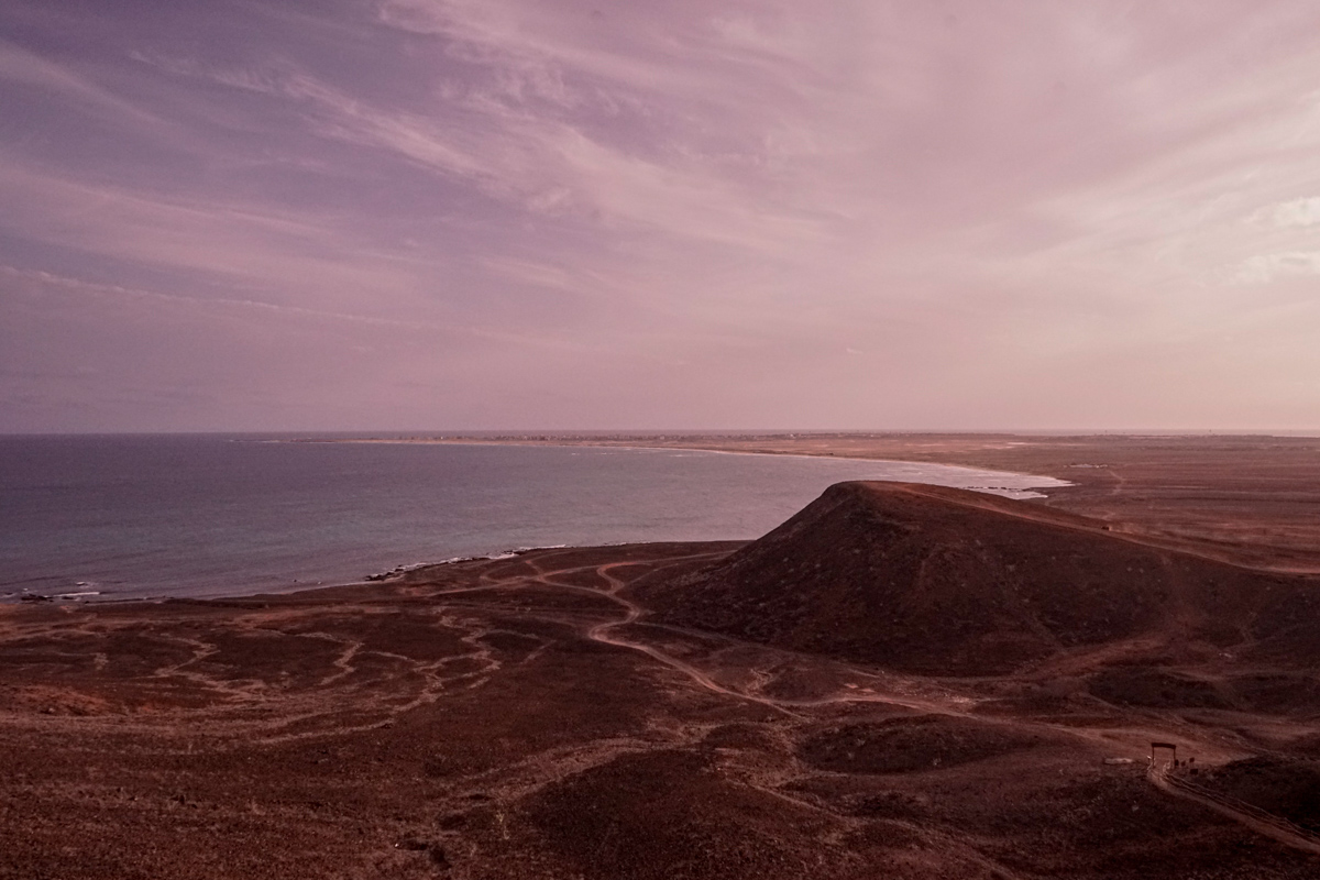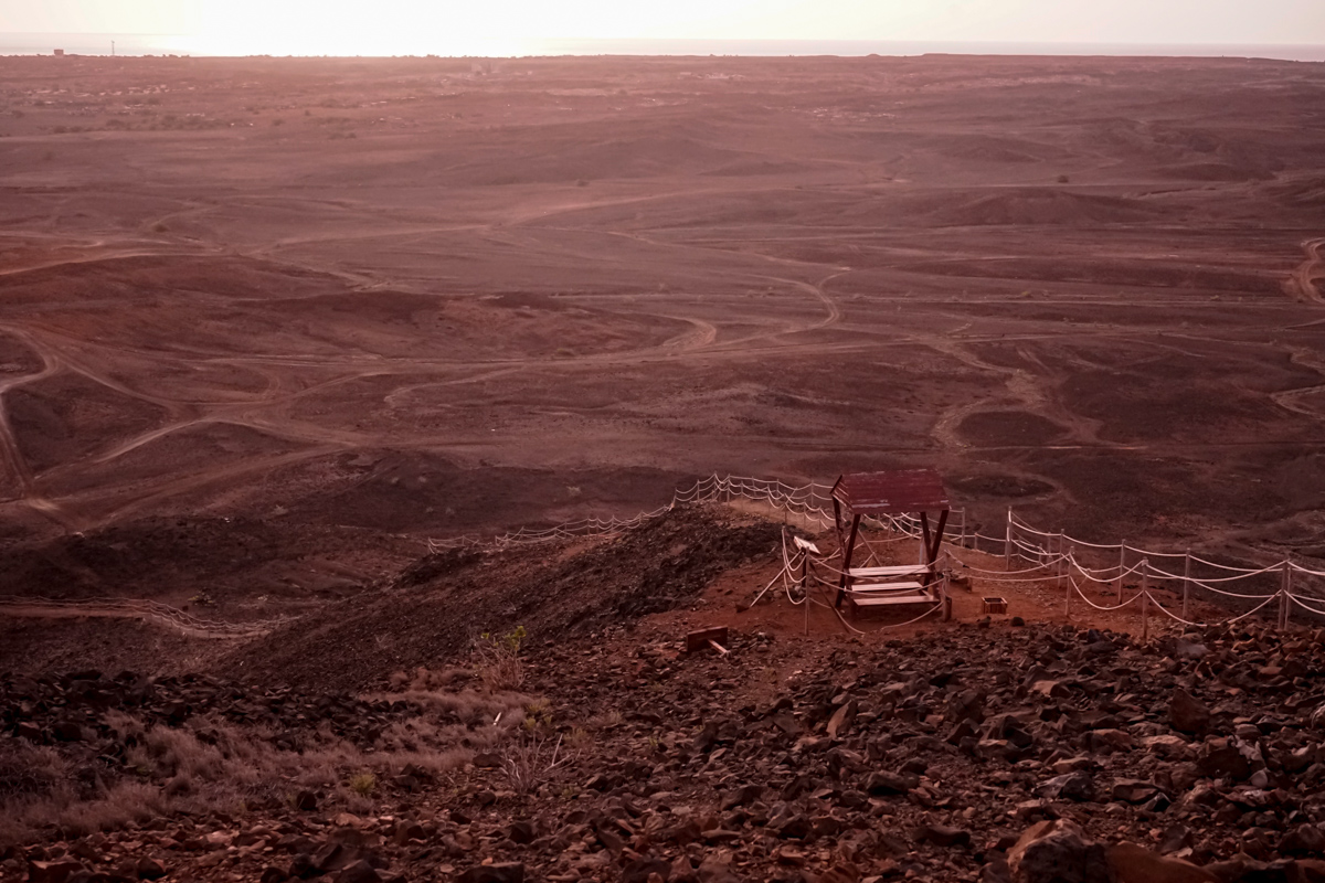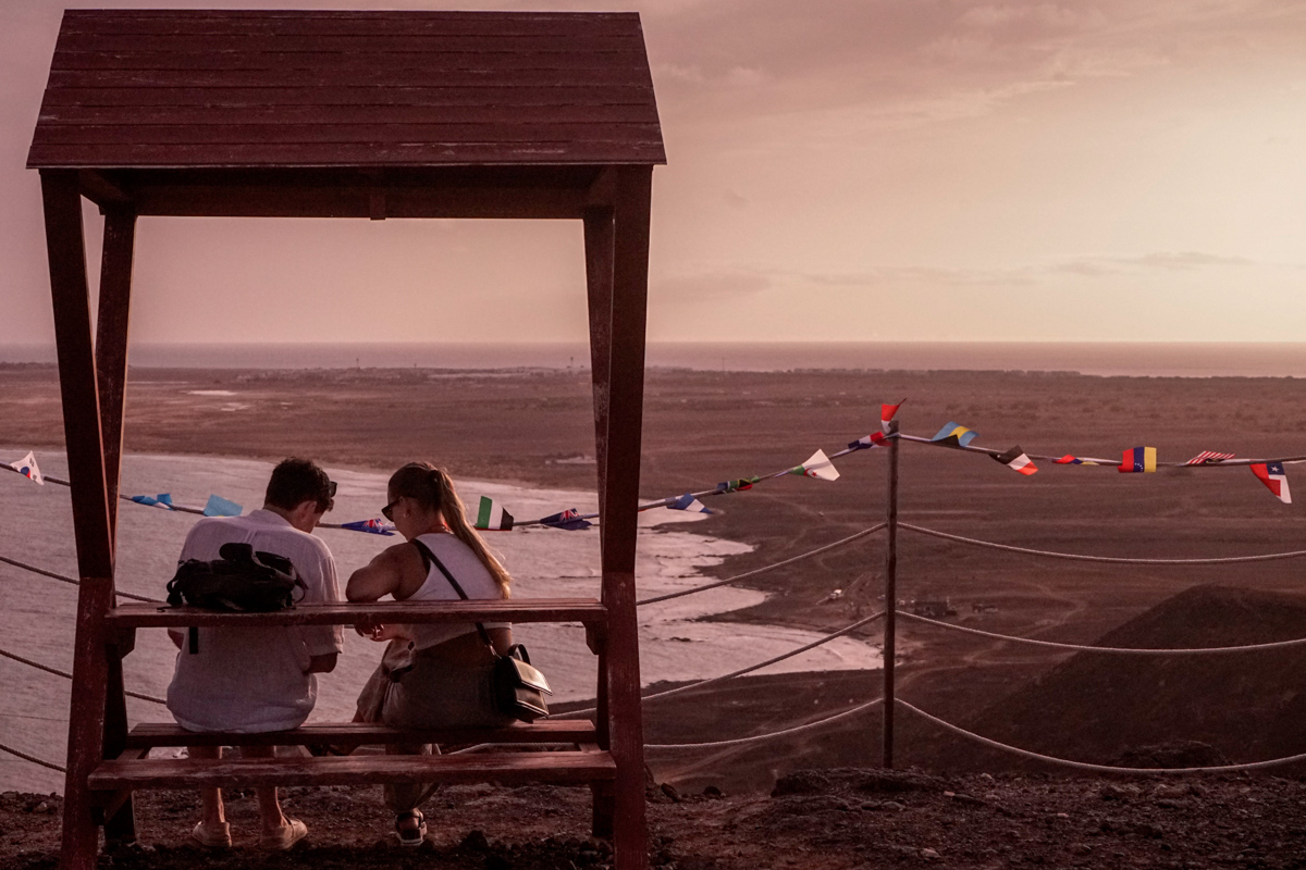 Começamos pela Serra Negra, perto de Santa Maria, onde encontramos a Zipline Cabo Verde, uma empresa que se dedica à experiência de zip line, ou tirolesa, nesta paisagem que apenas o mar impede de apelidar de marciana. A corda em que viajamos tem mais de um quilómetro, a partir da Serra Negra, e permite uma viagem de cerca de um minuto e meio, a solo ou com companhia.