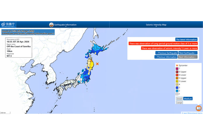 O sismo ocorreu às 16h53 locais (08h53 em Lisboa) nas águas do Pacífico, ao largo da costa Norte da prefeitura de Iwate, de acordo com a “RTP”.