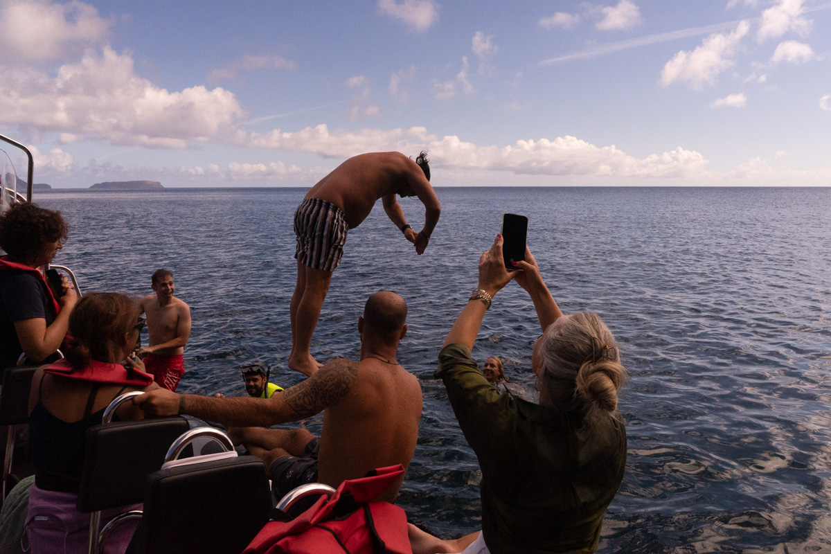 O último dia desta jornada começou com um passeio de barco em torno da ilha, para conhecer alguns dos pontos de interesse, como o Ilhéu da Cal, dar uns mergulhos e fazer um piquenique a bordo.