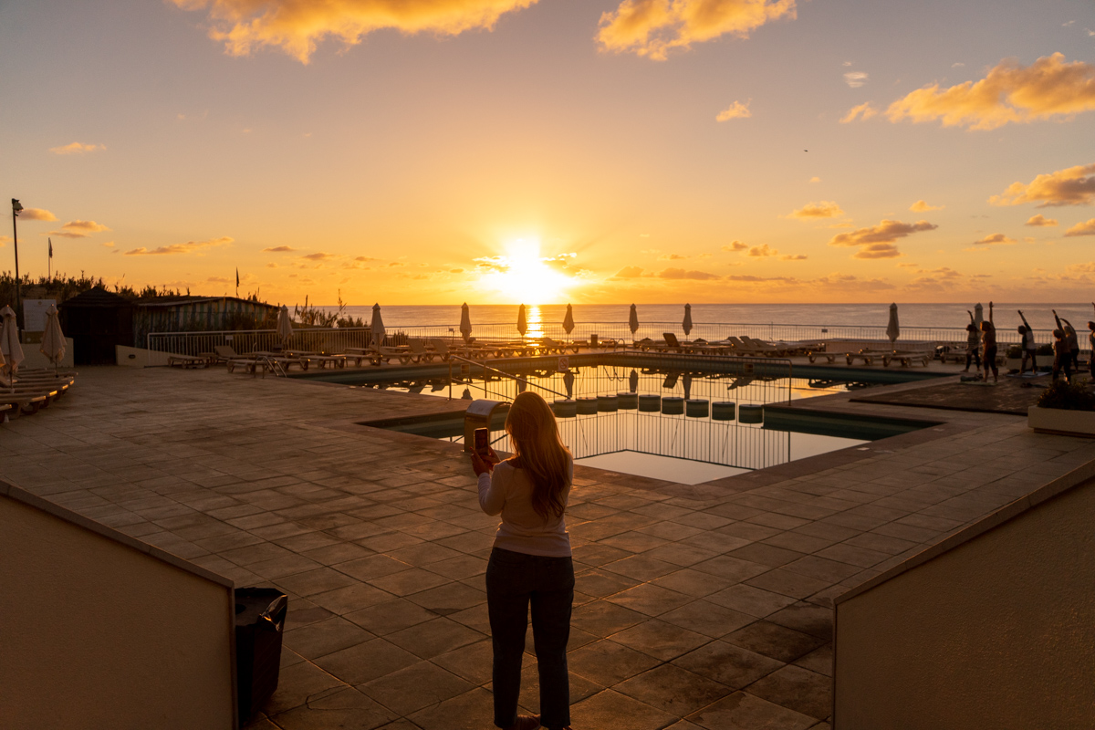 Bem cedo, para aproveitar o dia, o grupo voltou a embarcar, mas desta vez num avião da Binter, rumo a Porto Santo, onde ainda conseguiu apanhar parte do nascer do Sol na praia do Vila Baleira Suites, onde ficou alojado.
