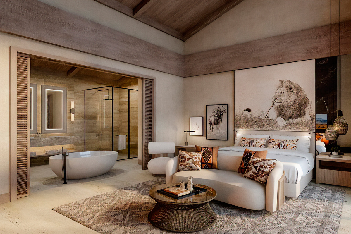 Os quartos e áreas comuns do hotel são inspirados na cultura Maasai, “decorados seguindo uma paleta de cores neutras que alcança espaços amplos e luminosos e chama a atenção pelas maravilhosas vistas que o ambiente oferece”.