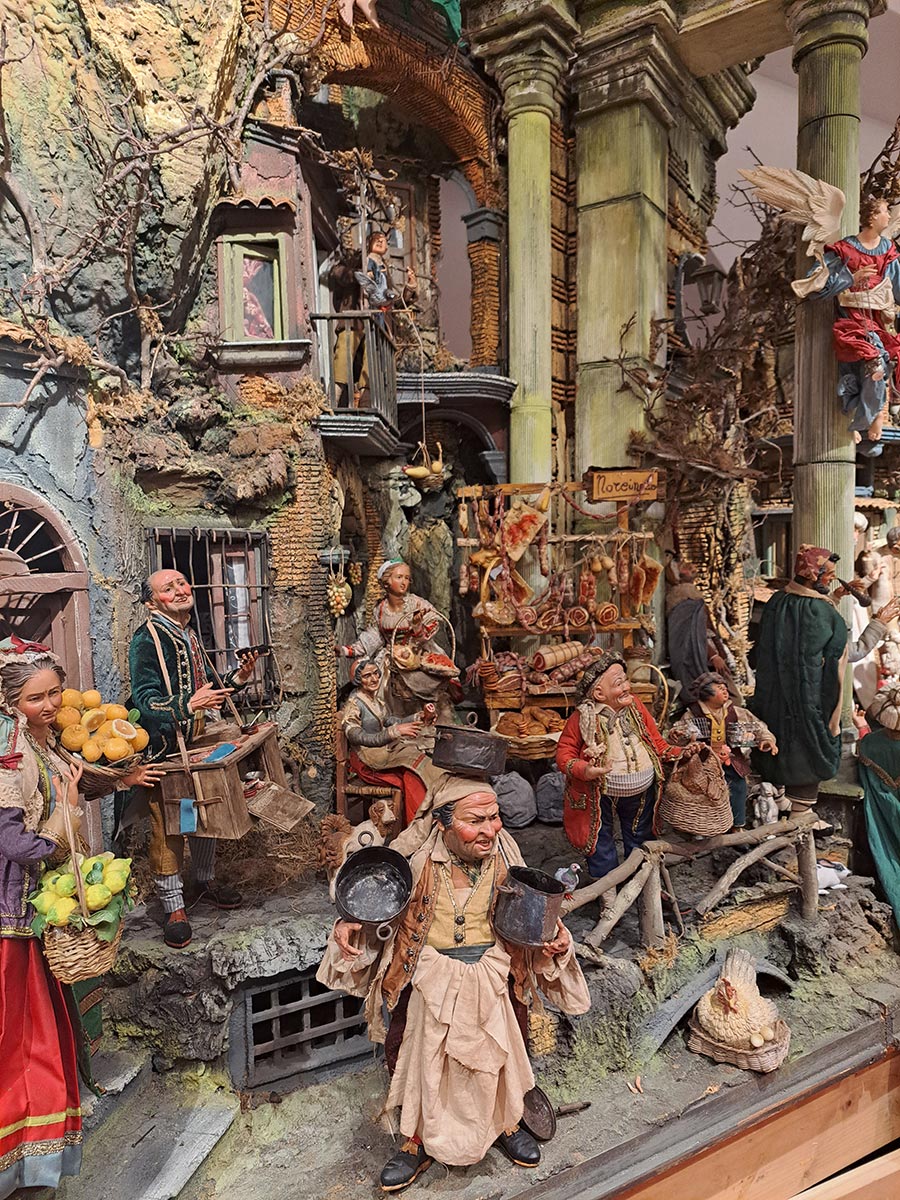 A ‘culpa’ de tamanho frenesim nesta altura do ano, deve-se em grande parte ao mercado de Natal e à tradição dos presépios que tornou Nápoles uma espécie de epicentro da arte presepial muito apreciada pelos italianos (e não só), multiplicando-se as iniciativas de acesso livre ou em espaços museológicos até 6 de Janeiro. Há presépios minúsculos que se poderiam meter num bolso e outros gigantes, com milhares de peças, normalmente adquiridos por igrejas, empresas e outras instituições para exibição nesta altura do ano.