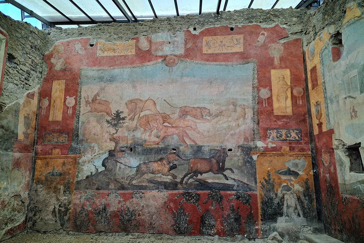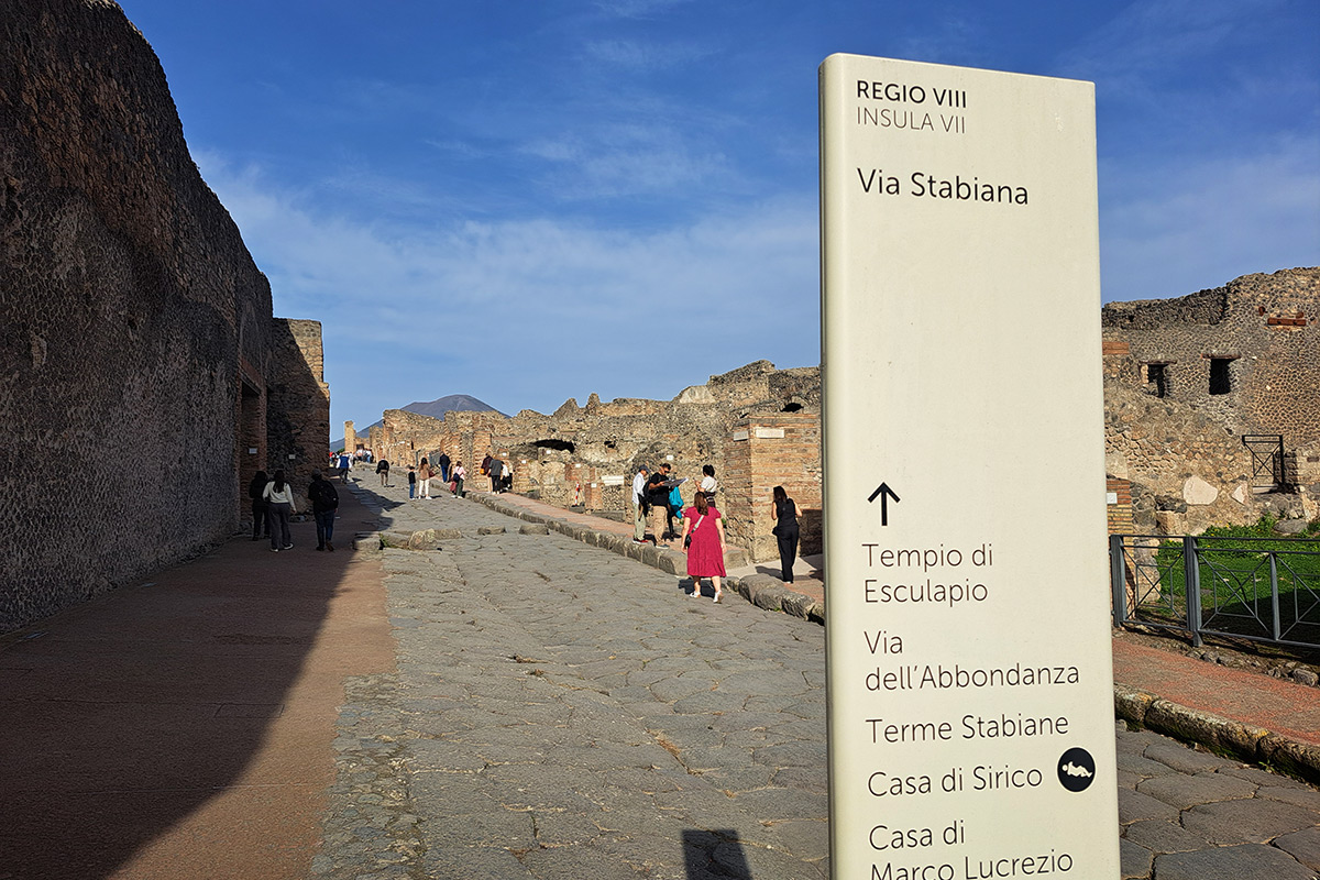 A erupção destrutiva causada pelo Monte Vesúvio cobriu de cinzas Pompeia e as cidades vizinhas de Herculano e Stabia, proporcionando uma visão única da sociedade romana da época. Na época da erupção, a cidade era um importante e concorrido centro cultural e económico do Império Romano, com teatros, banhos públicos, mercados e residências luxuosas.