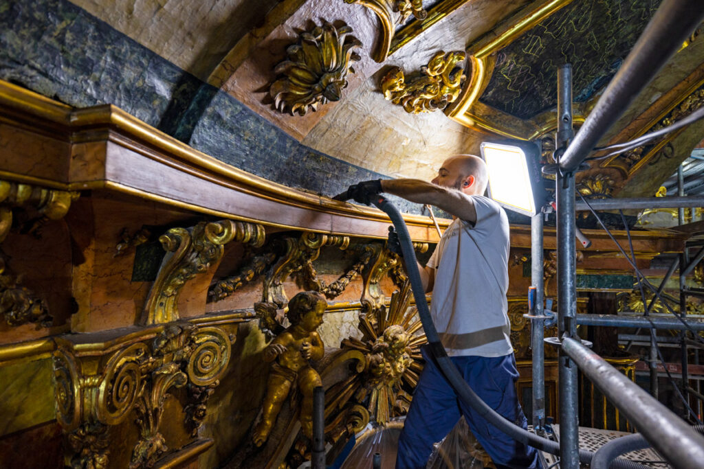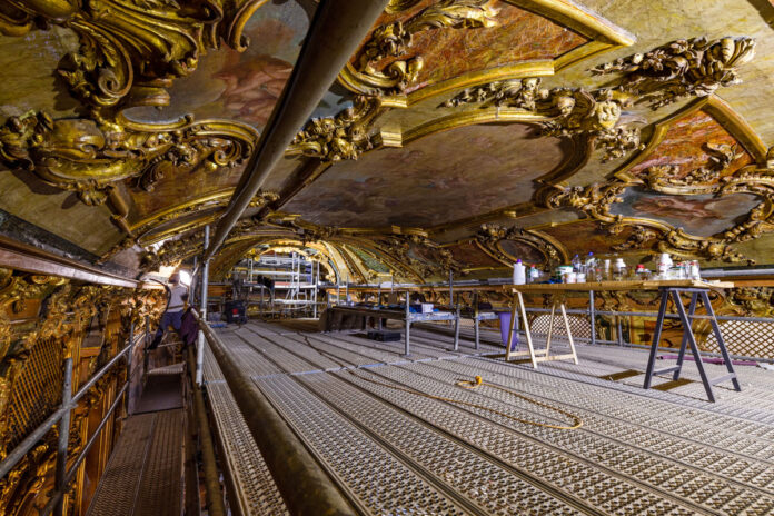 “A Capela Real do Palácio Nacional de Queluz está a ser objecto de uma intervenção integral de conservação e restauro”, indica a nota da Parques de Sintra, sendo que um dos objectivos “é permitir a perfeita e funcional reintegração do órgão histórico de tubos do século XVIII, que vai voltar ao local original ao fim de mais de 100 anos”.