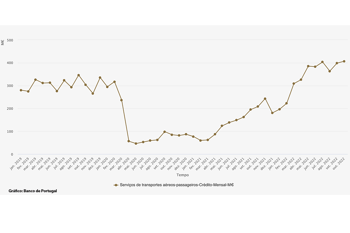Estes dados apontam, pois, para que 2022 seja um novo ano recorde em excedente das transacções externas do transporte aéreo de passageiros, tanto mais quanto Outubro foi o primeiro mês em que pela primeira vez o saldo aumentou mais de cem milhões de euros em relação ao mês homólogo de 2019.