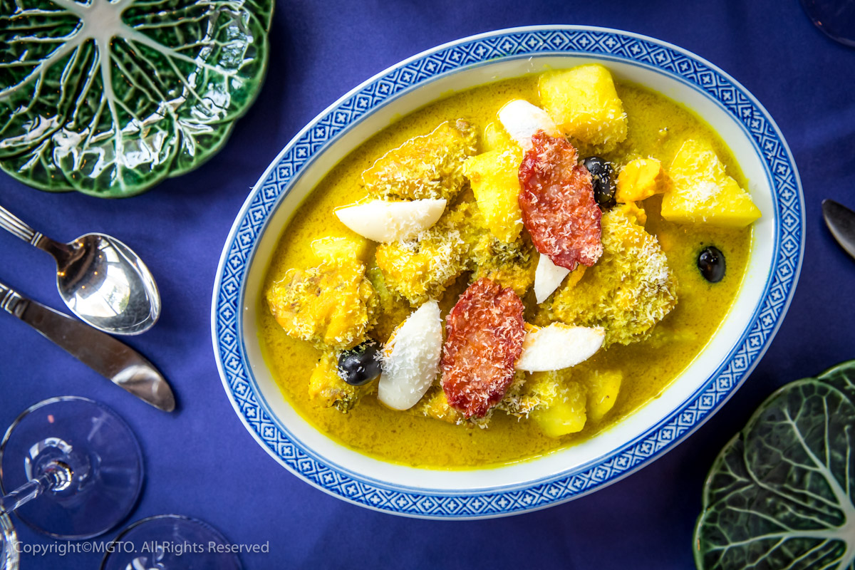 • Se as influências portuguesas já eram notórias no Minchi, o Arroz de Marisco, as Amêijoas ou o Arroz de Pato não deixam margem para dúvidas. Outras opções disponíveis em Macau que também encontramos em Portugal, incluem a Galinha à Africana e o Caril de Caranguejo, todos eles feitos com algumas adaptações locais;