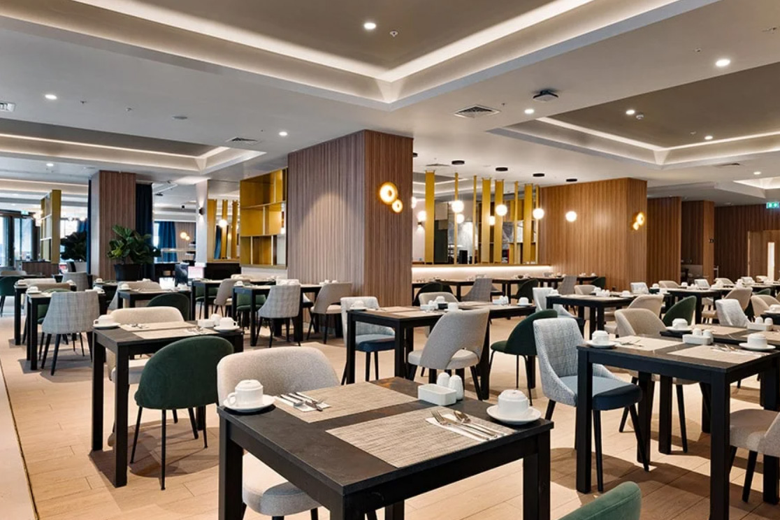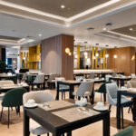 O hotel tem um bar no lobby onde são servidas bebidas e refeições ligeiras e um restaurante para pequeno-almoço buffet e jantares à la carte.