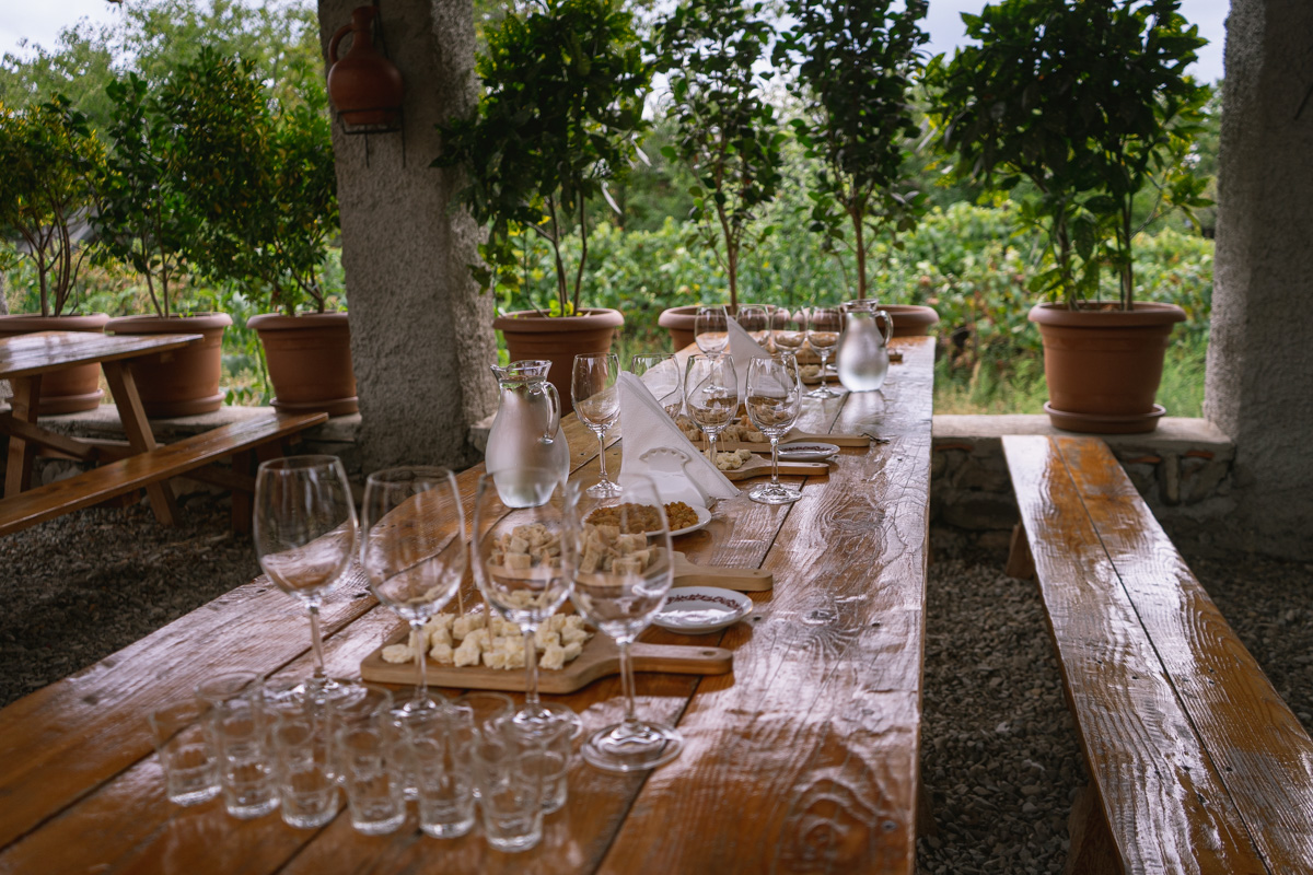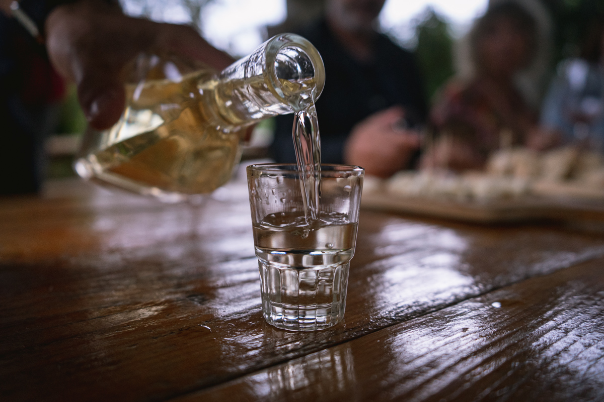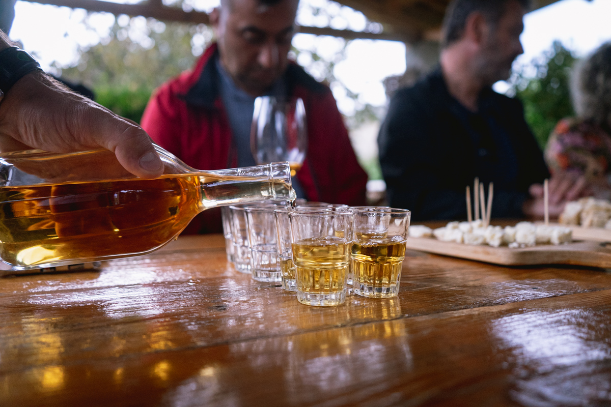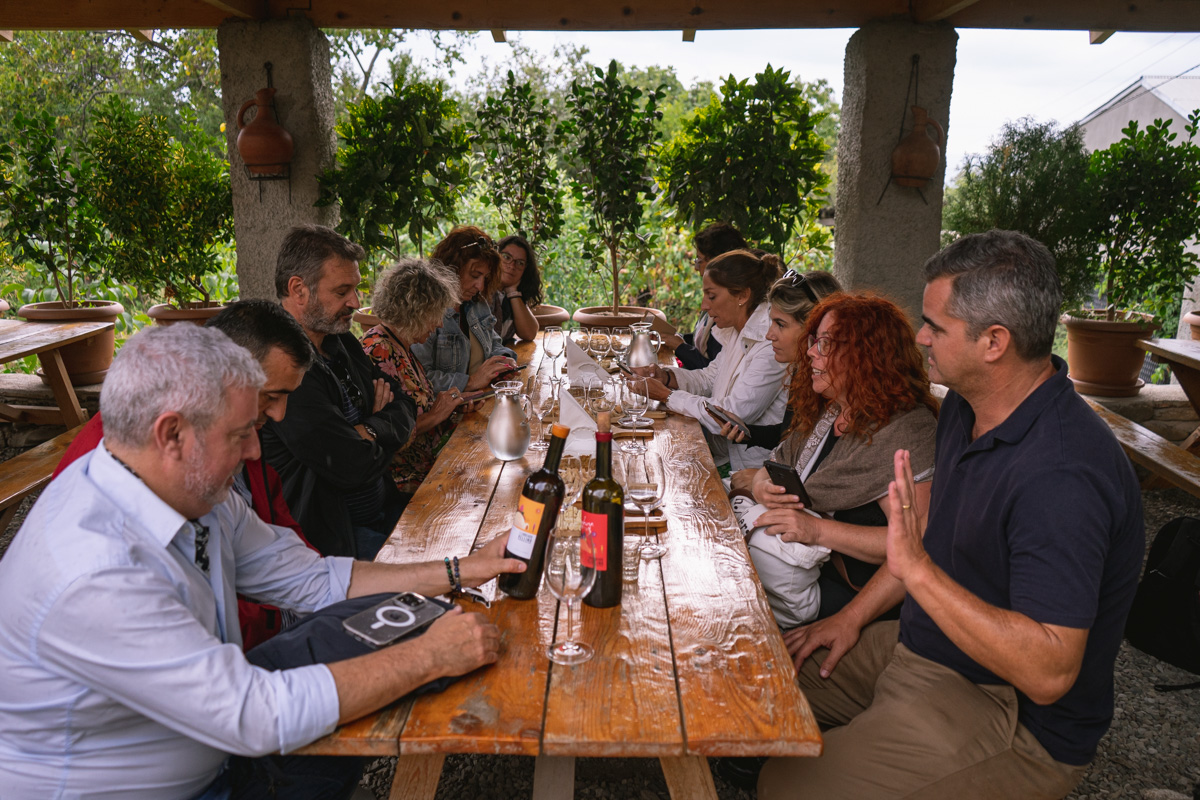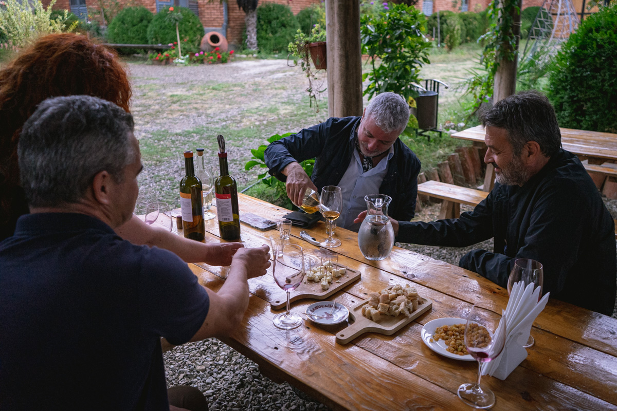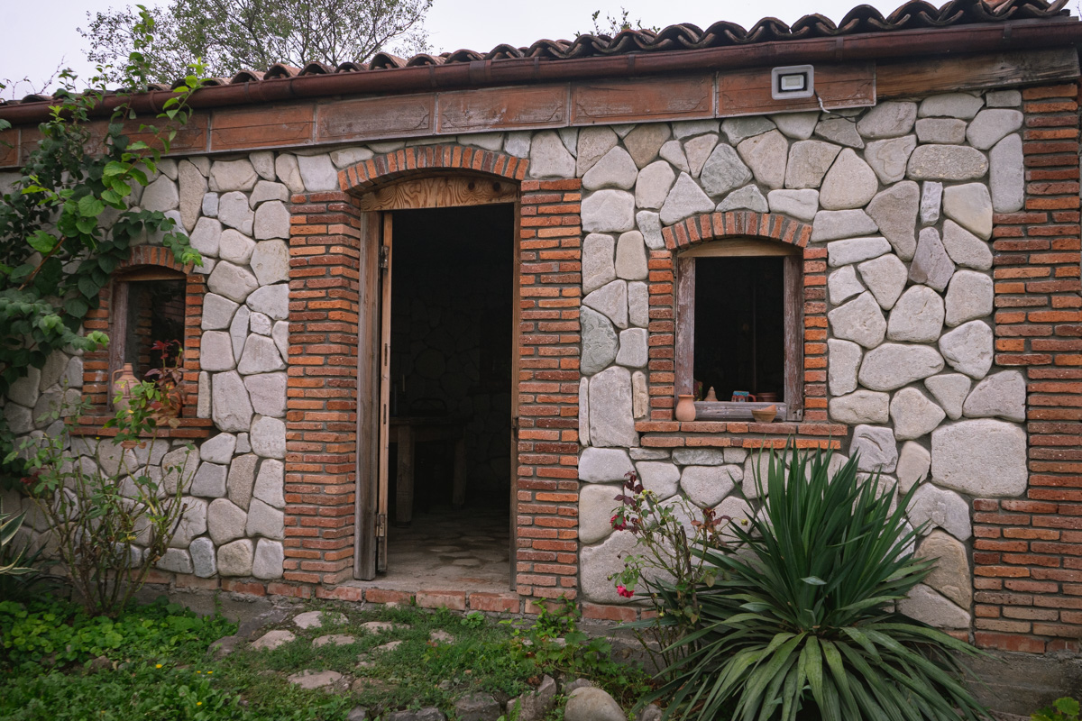 Fomos inicialmente recebidos pelo cão Dobby, o animal de estimação da adega, que antecedeu a chegada de Beka, o proprietário, que nos recebeu e apresentou o processo através do qual faz os seus vinhos qvevri e as suas destilações, uma bebida ao estilo de aguardente denominada chacha. Nesta adega, que tem uma produção de cerca de 15.000 garrafas anuais, fazem-se refeições, provas de vinhos e de chachas, e visitas guiadas.