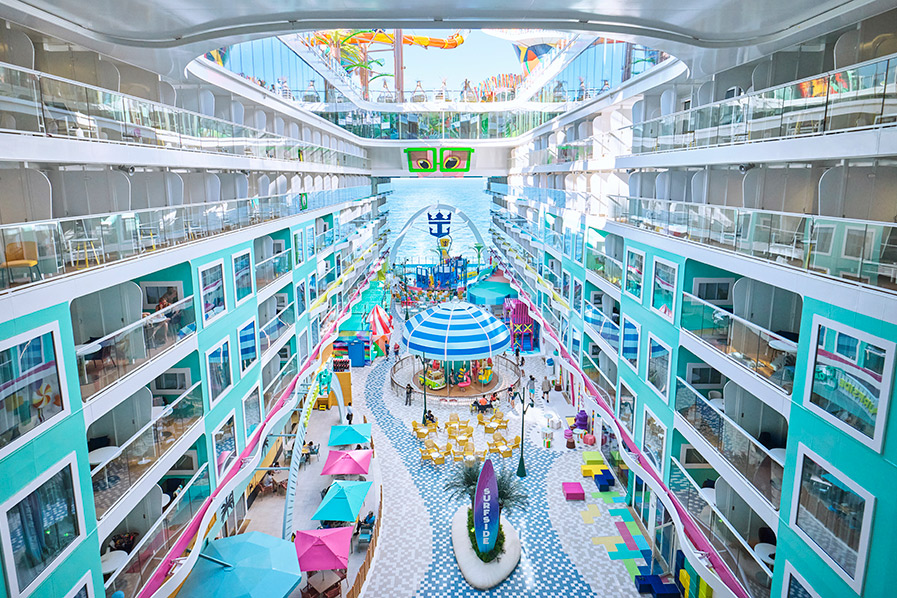 “Escorregas aquáticos mais rápidos e mais altos” e “mais de 40 opções para jantar e beber combinadas com aventuras em destinos idílicos como o Perfect Day na CocoCay, nas Bahamas” são alguns dos atractivos do novo navio destacados pela Royal Caribbean em comunicado.