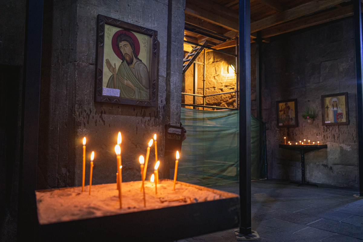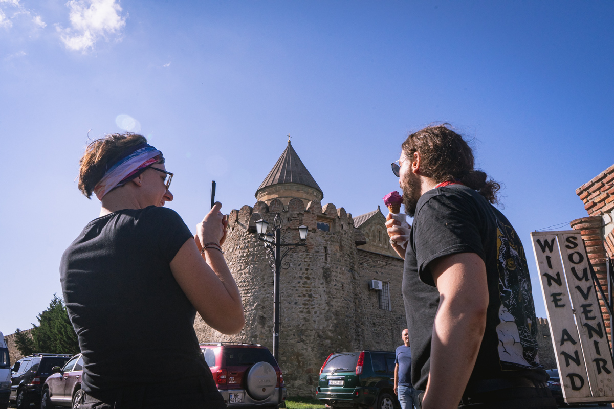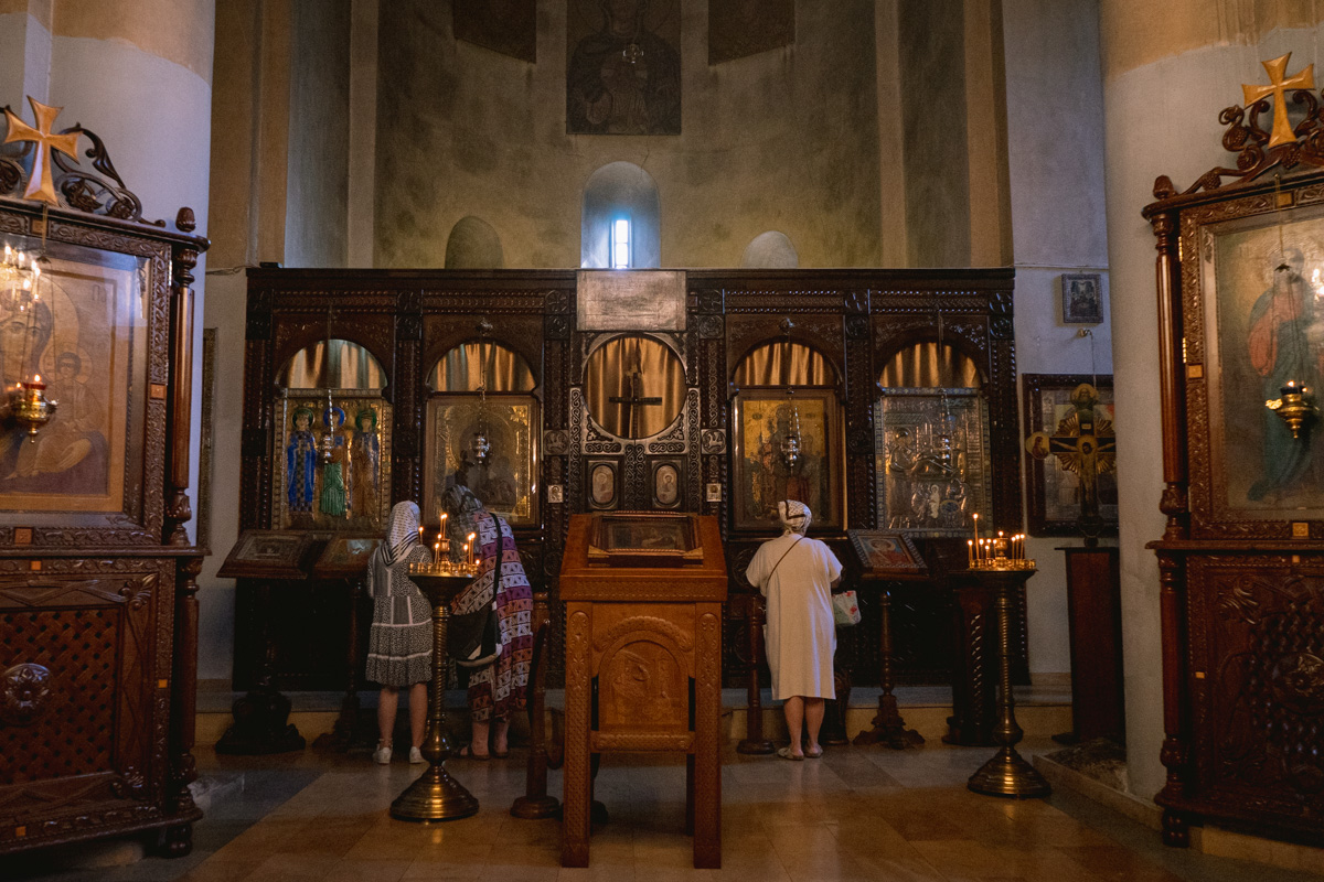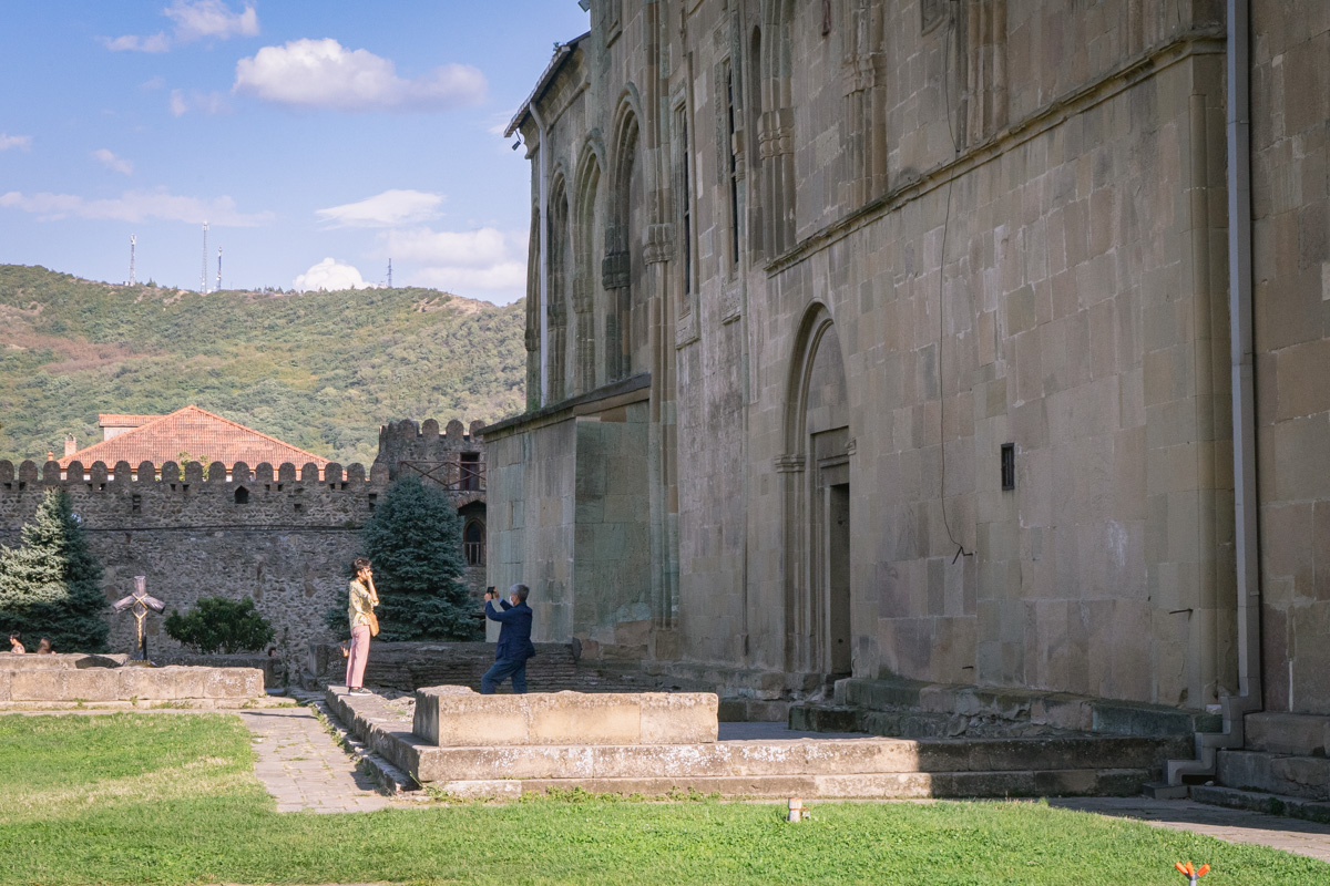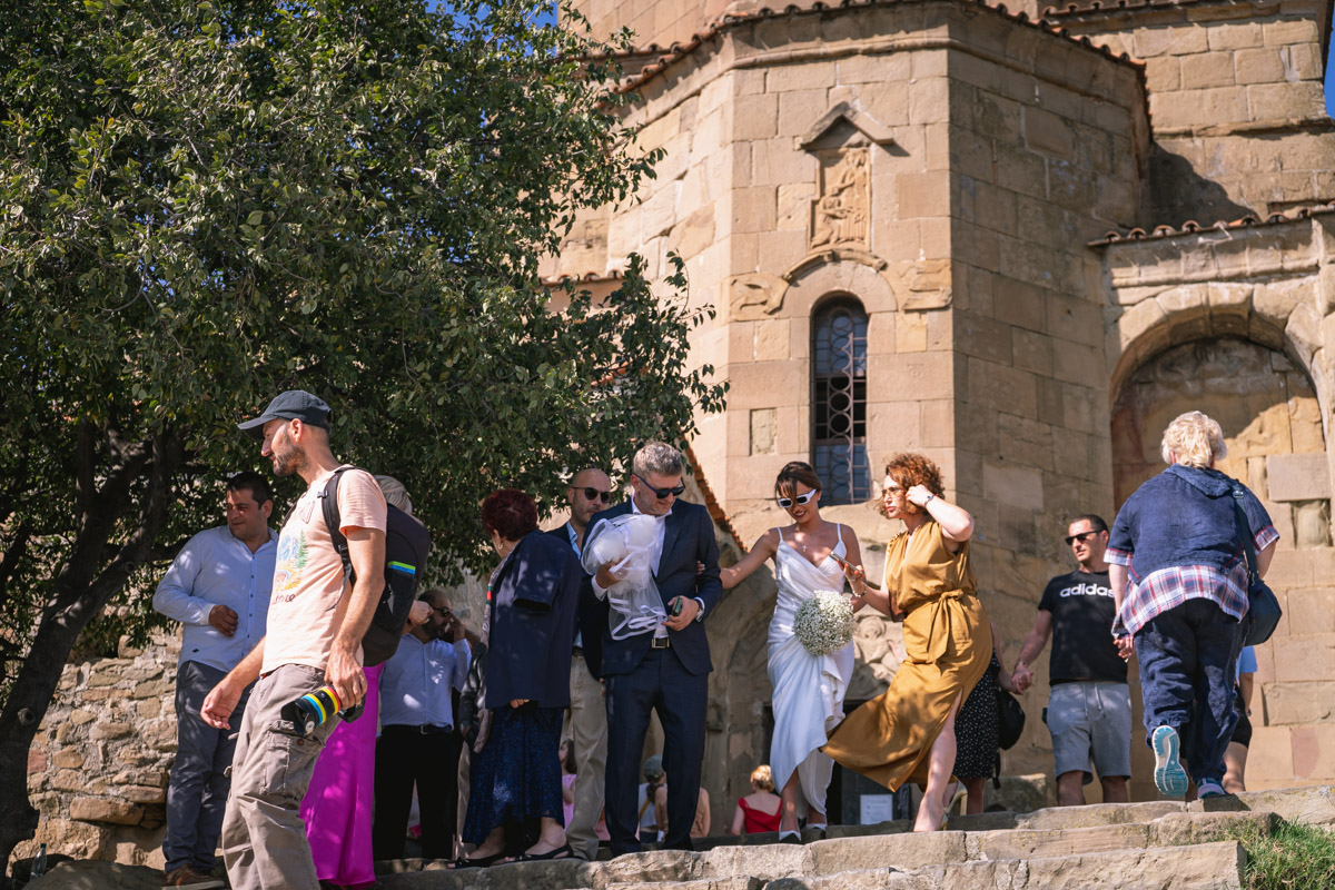 É possível visitar a zona exterior do Mosteiro Jvari, bem como o seu interior. Nesta viagem, o grupo encontrou-se com um casal que celebrava o seu casamento neste templo.