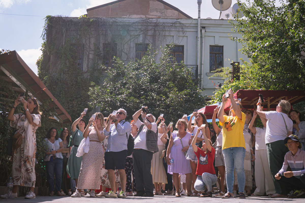 Descemos da zona da igreja e atravessamos o centro histórico, com as cúpulas em tijolo dos famosos banhos de enxofre e com as ruas ladeadas por casas de arquitectura tradicional. O grupo também teve oportunidade de ver a Torre do Relógio de Rezo Gabriadze e visitar o Bazaar Meiden.
