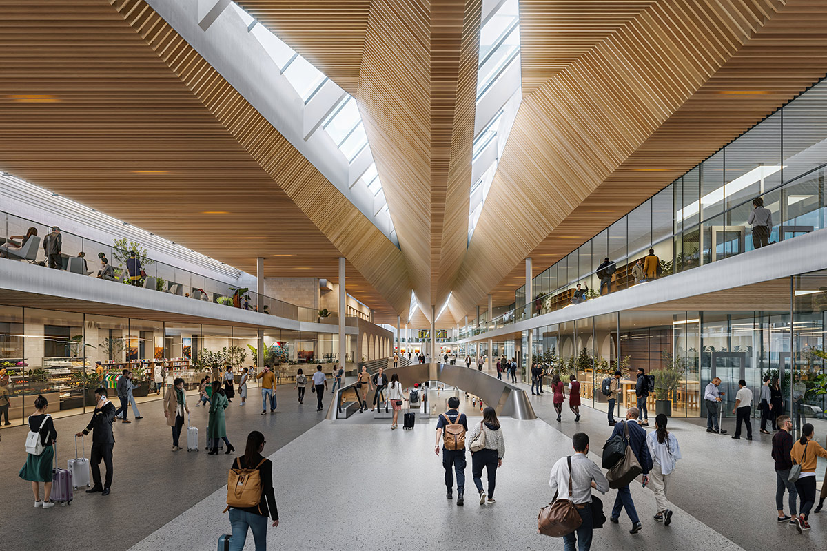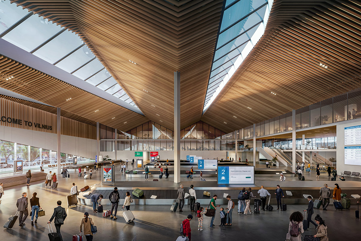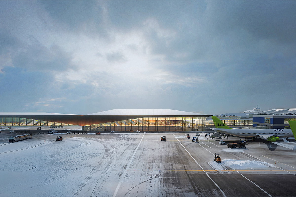 A proposta do estúdio Zaha Hadid Architects pretende criar um complexo para unir todos os terminais do Aeroporto de Vilnius, integrando os transportes públicos e privilegiando a circulação de peões, ciclistas e pessoas com mobilidade reduzida.