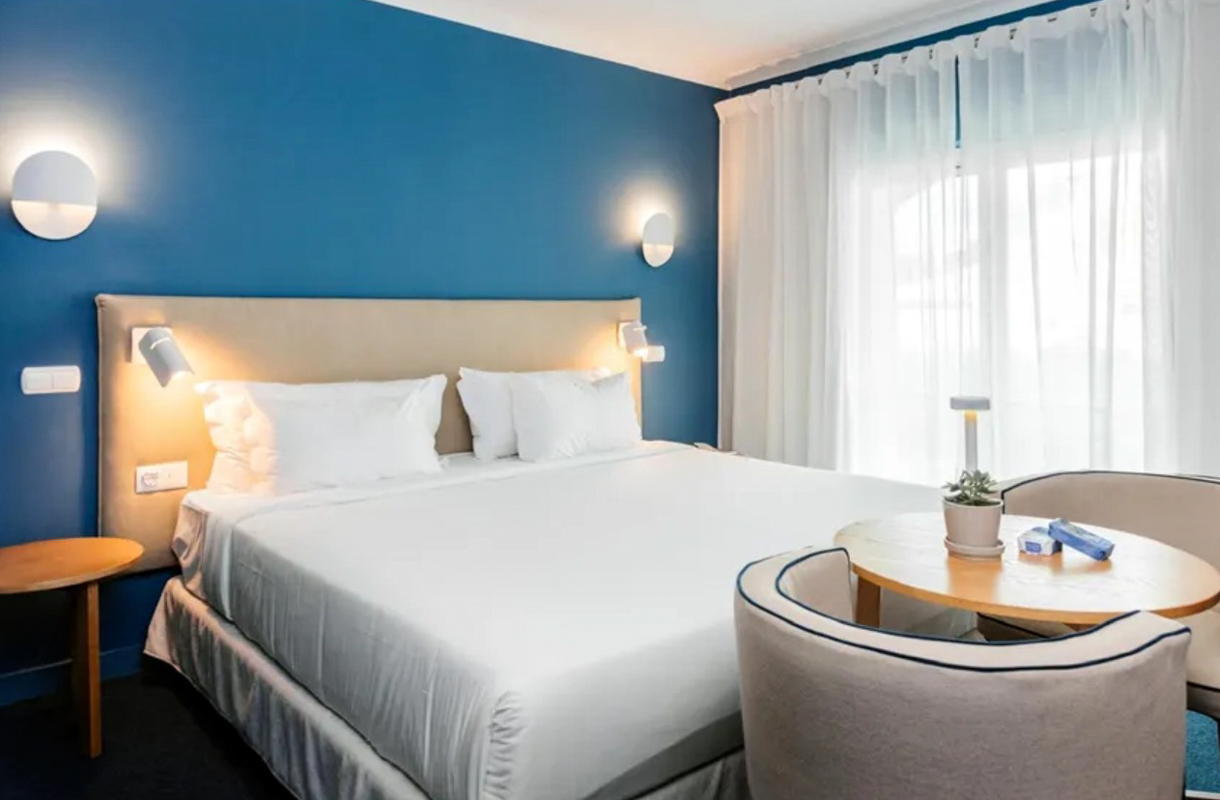 São 73 quartos e duas suites renovadas sob o conceito Blue Experience, com uma nova linguagem estética que privilegia os tons de azul profundo inspirados no mar da costa algarvia nos quartos.