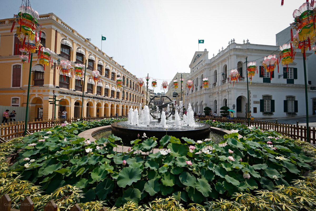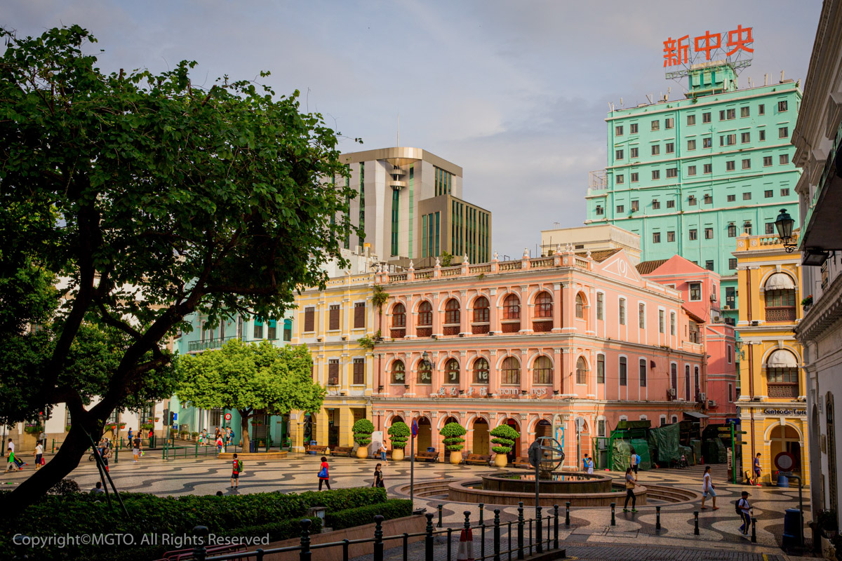 - A calçada portuguesa é também o pavimento do Largo do Senado, o centro urbano de Macau ao longo dos séculos e, ainda hoje, o local mais popular para eventos públicos e festejos. Está rodeado de edifícios neoclássicos pintados em tons de pastel, criando um ambiente mediterrânico. Um dos edifícios é o Leal Senado, a primeira câmara municipal de Macau, função que ainda mantém. No interior encontramos uma biblioteca em madeira ricamente decorada, ao estilo da biblioteca do Convento de Mafra. É também neste Largo que fica a Santa Casa da Misericórdia, instituição que segue o modelo de uma das organizações solidariedade social mais antigas de Portugal, responsável pela fundação da primeira clínica de estilo ocidental em Macau e de outras estruturas sociais de cuidados de saúde, que ainda funcionam actualmente;